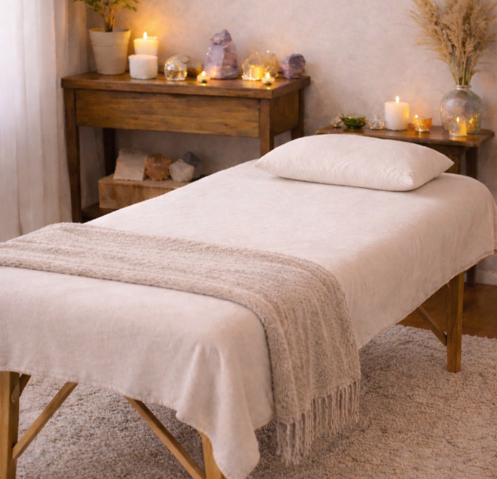 A sessão acontece em um ambiente tranquilo e acolhedor, permitindo que o corpo relaxe enquanto a energia se reorganiza naturalmente.