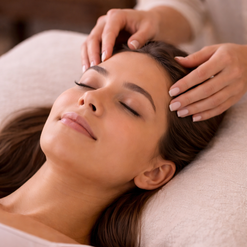 A sessão consiste em toques suaves em pontos da cabeça que auxiliam na liberação de padrões mentais e na redução da sobrecarga de pensamentos, promovendo relaxamento e bem-estar.